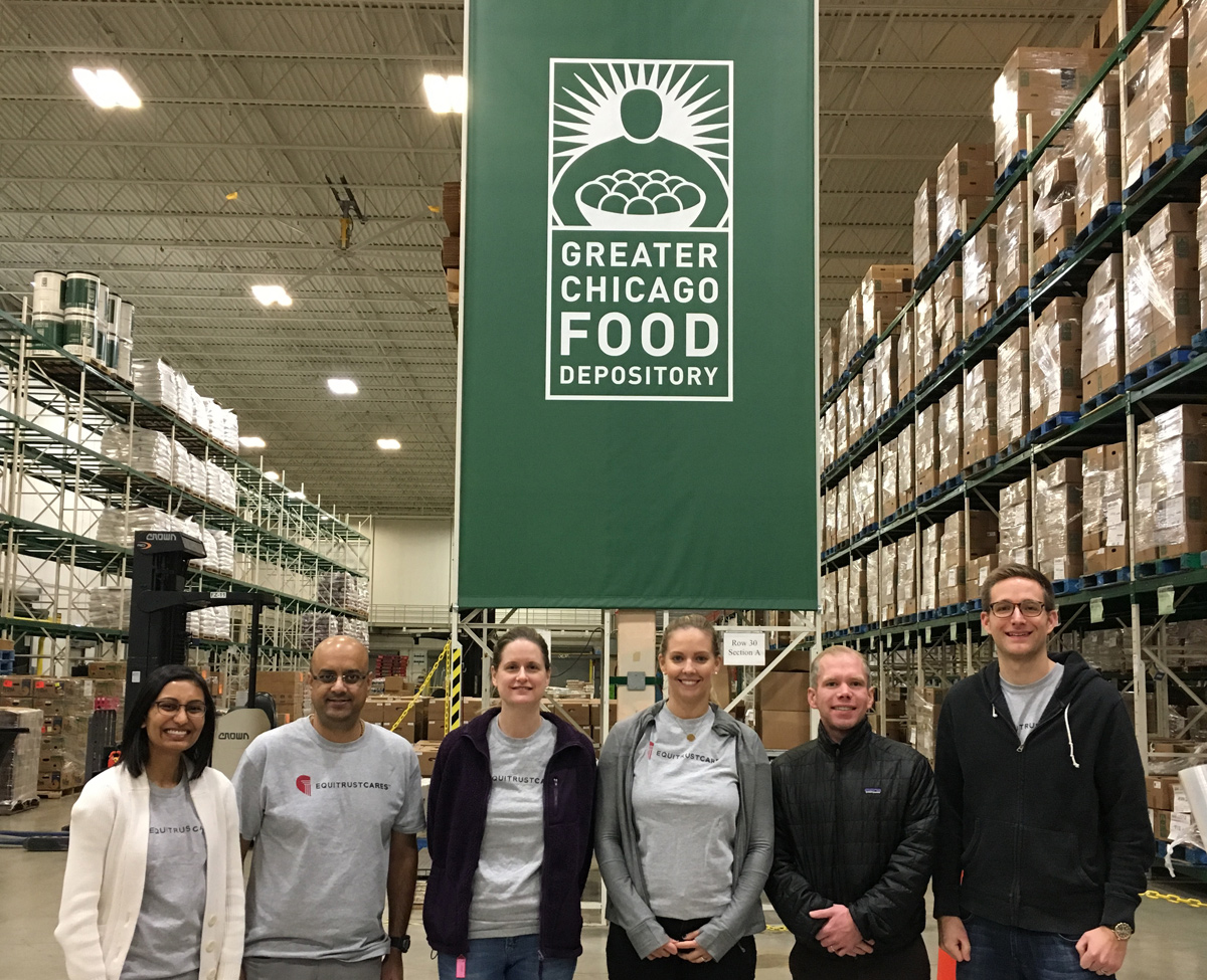 We were surprised to learn that as many as 1 in 6 residents of Cook County residents turn to the Greater Chicago Food Depository each year. So, when there was an opportunity for our Chicago EquiTrust Cares group to volunteer, it was something we wanted to do.